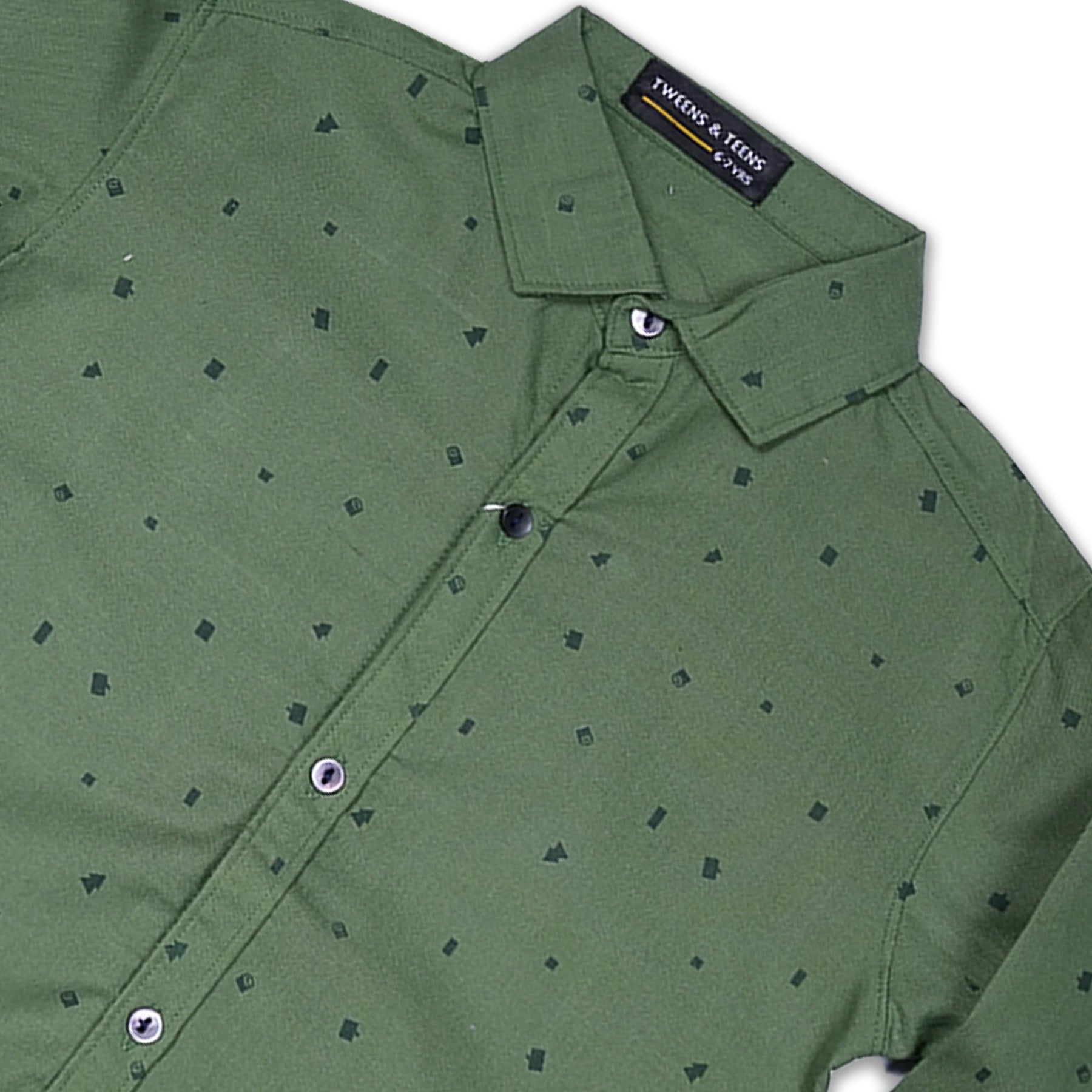 Dress your young gentleman in a smart and stylish look with this green printed long sleeve shirt. Featuring a subtle yet eye-catching all-over print, this shirt adds a touch of sophistication to any outfit. The unique green color is versatile and perfect for both casual and dressier occasions. Made from a comfortable and breathable fabric, this shirt ensures all-day comfort. It features a classic button-down design with a pointed collar and buttoned cuffs. Let your boy step out in style with this printed green shirt.