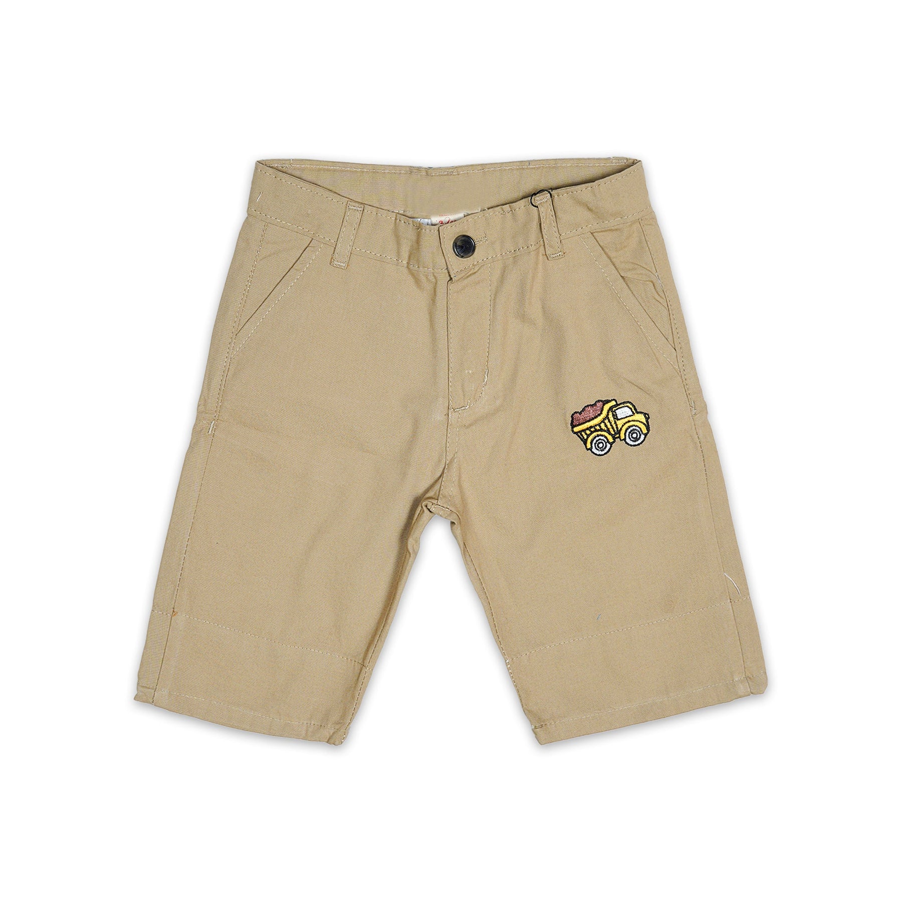 Your little builder will love these comfortable and stylish JuniorArm boys' khaki shorts. Featuring a playful truck appliqué on the leg, these shorts add a fun touch to any outfit. The classic khaki color is versatile and pairs well with a variety of tops. Made from a soft and durable fabric, these shorts are perfect for everyday play and adventures. They feature a traditional button and zip closure, along with belt loops for a customizable fit. Practical pockets provide ample space for little treasures. Let your child explore in comfort and style with these JuniorArm khaki shorts.