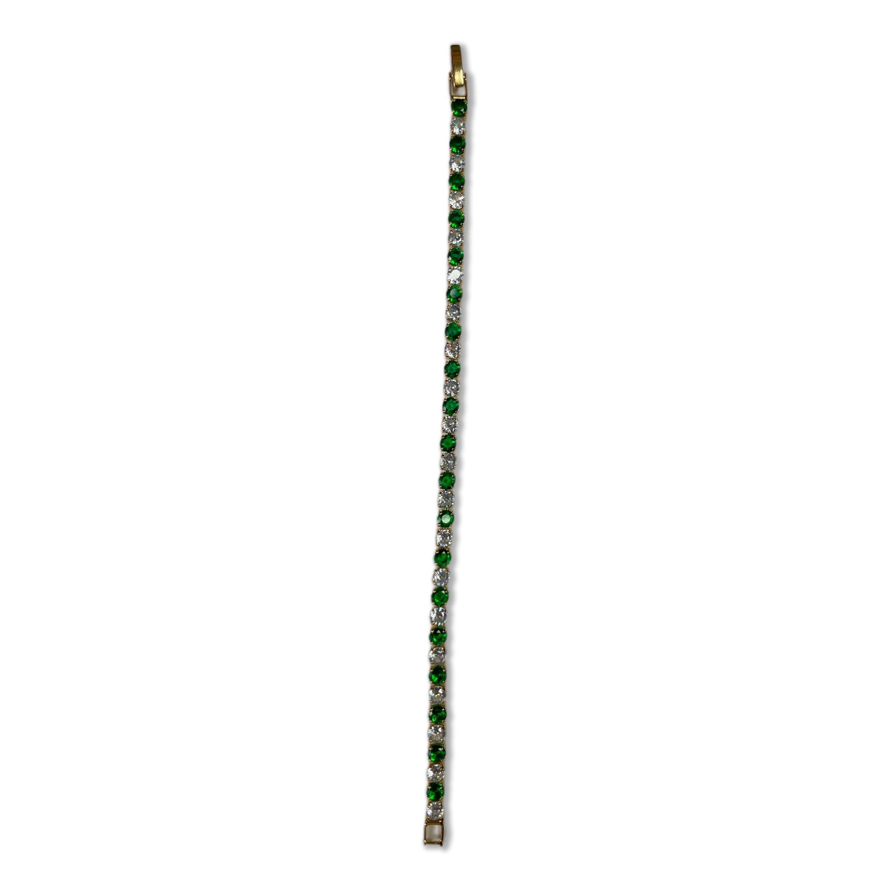 Experience the captivating allure of this classic tennis bracelet, reimagined with a vibrant twist. A delicate chain, crafted with precision, showcases a mesmerizing sequence of alternating emerald and diamond accents. The rich green hue of the emeralds, known for their timeless elegance, is beautifully complemented by the dazzling brilliance of the diamonds, creating a captivating play of light and color. This bracelet is a testament to refined craftsmanship and sophisticated style, perfect for adding a touch of vibrant luxury to any occasion.