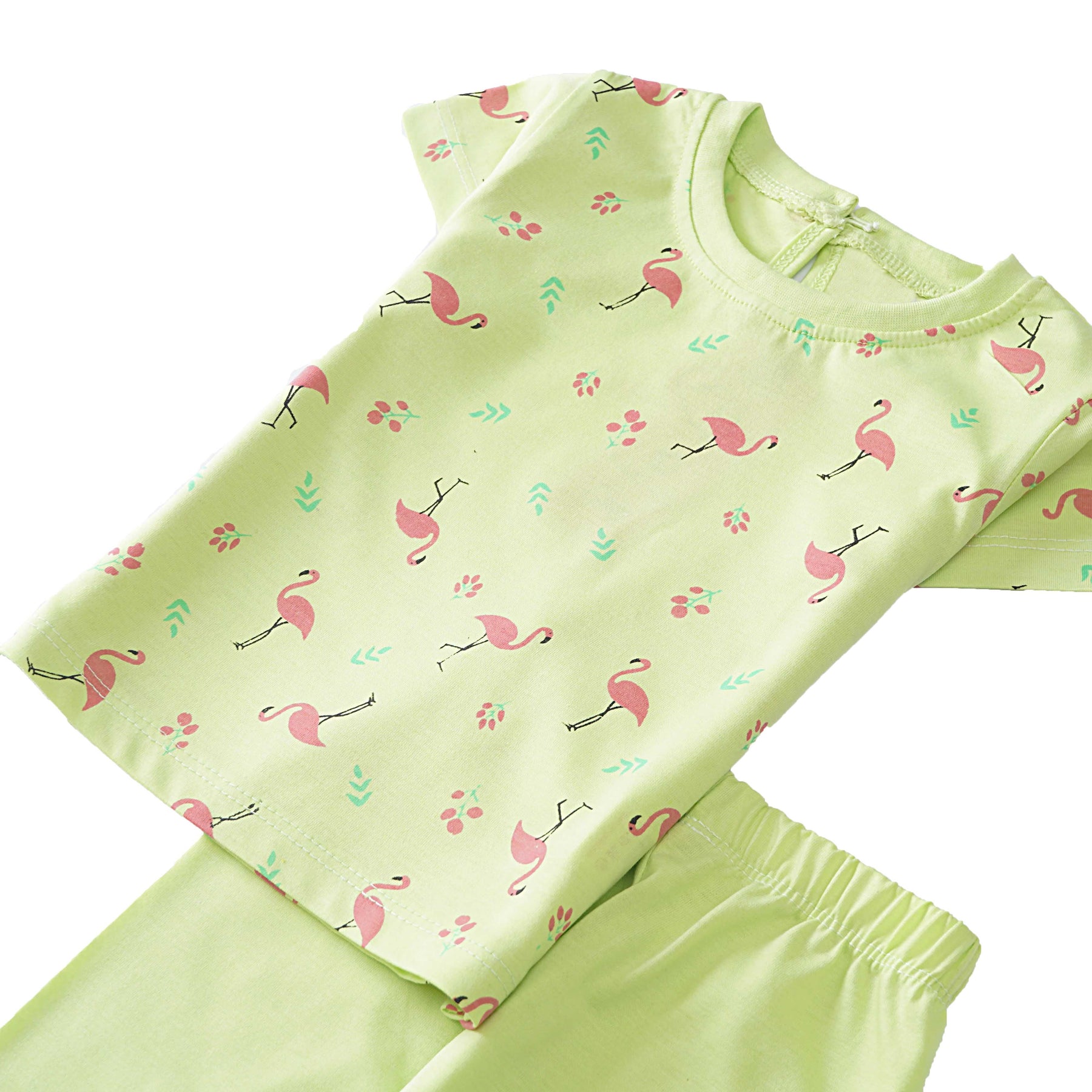 The top features a classic cut with short sleeves and a round neckline for easy wear and movement. Paired with matching bottoms, complete with an elastic waistband for a snug fit that allows for unrestricted play.