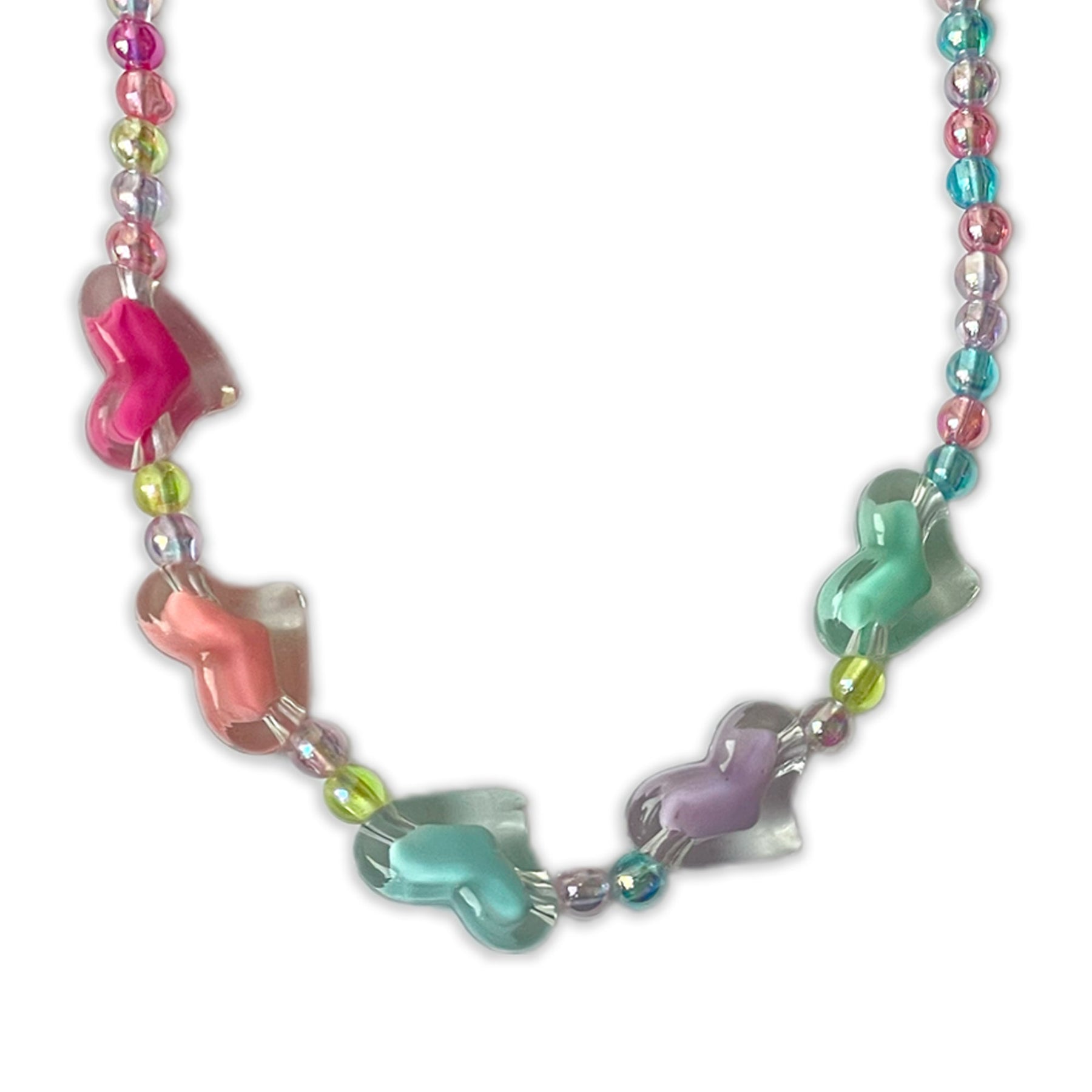 This charming jewelry set is perfect for adding a vibrant touch to any little one's outfit. The set includes a delicate beaded necklace featuring a mix of colorful iridescent beads in shades of pink, purple, green, and clear, along with adorable translucent butterfly charms in coordinating hues. A matching bracelet with the same colorful iridescent beads and a single larger iridescent purple bead completes the set. Lightweight and easy to wear, this necklace and bracelet set is a delightful accessory for everyday play or special occasions.