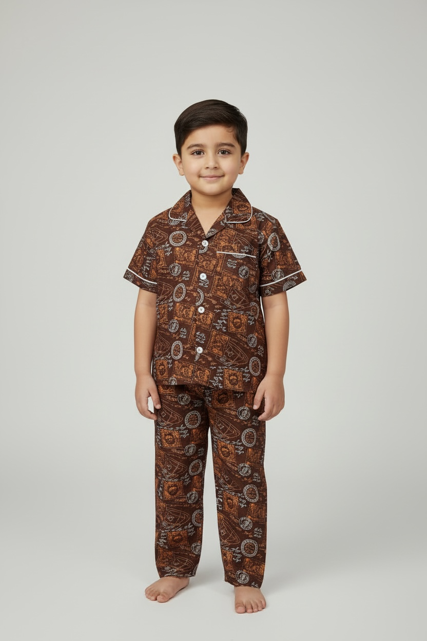 Give your little one a cozy and stylish sleep time with our Brown Classic Printed Boys Night Suit 🌙
